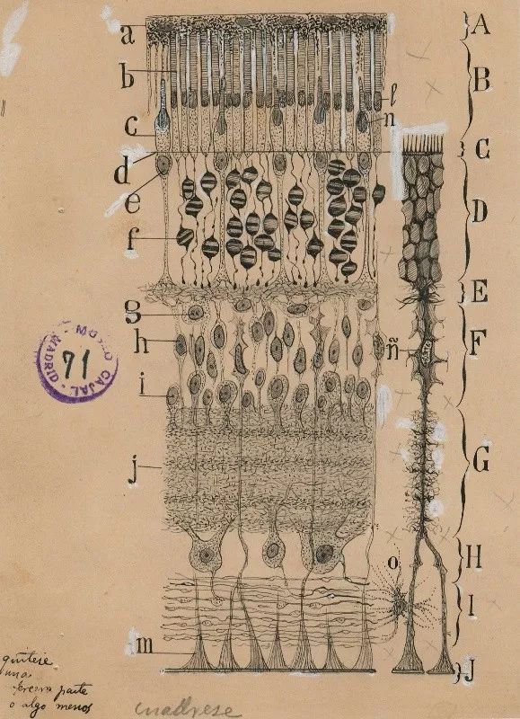 ►图2: 眼部虹膜的细胞。作者:卡哈尔 (1904年)