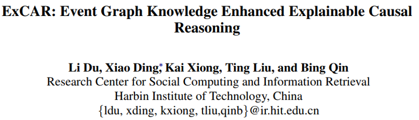 事件图知识增强的可解释因果推理(ExCAR)框架结构如下: