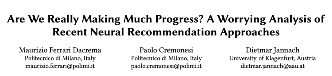 本文发表在推荐系统顶会 RecSys 2019 并获得了 Best Paper。作者梳理实现了大量顶会推荐论文的代码方便大家入门推荐系统。