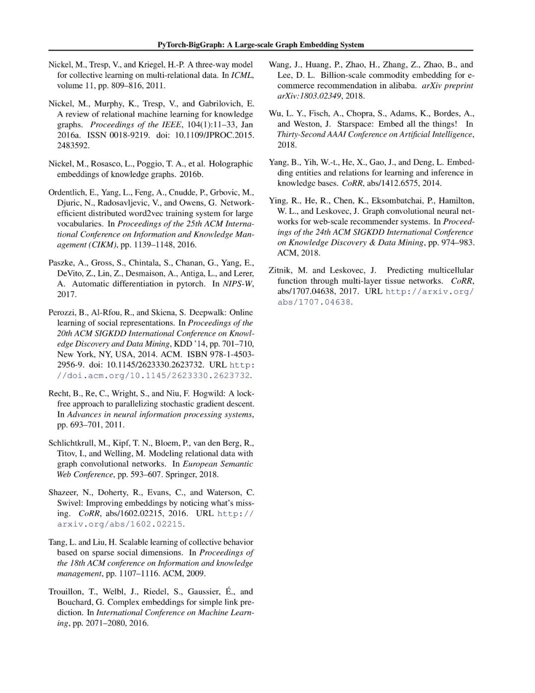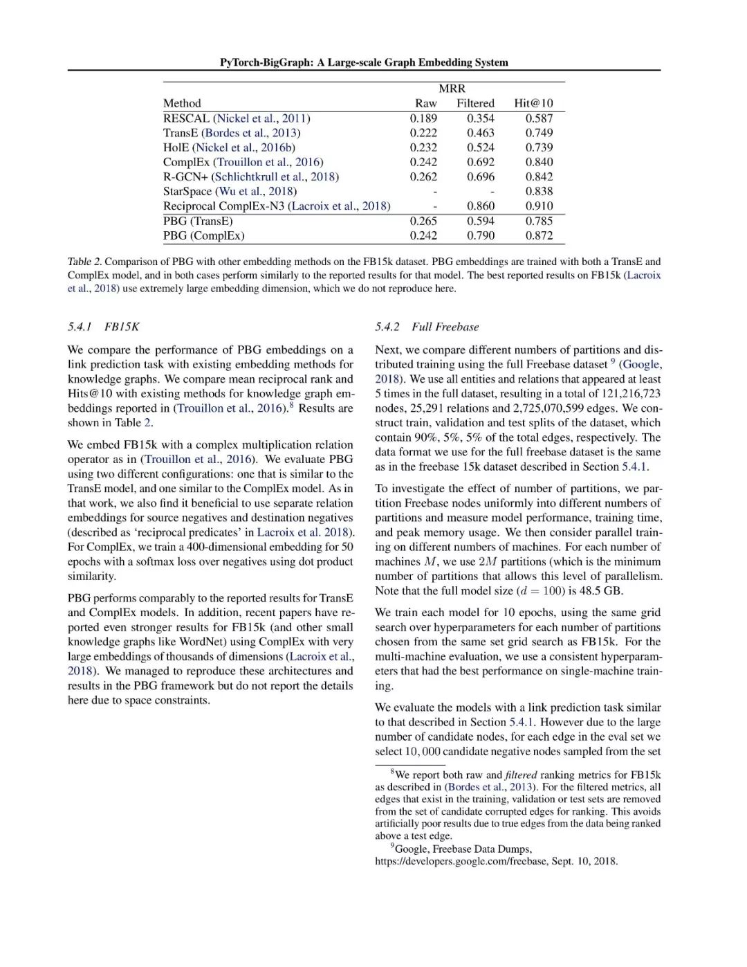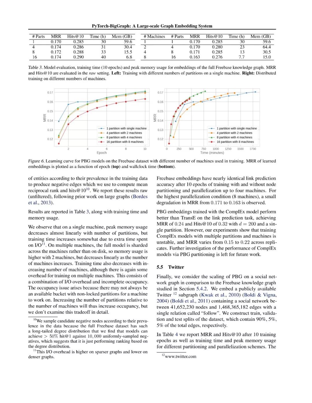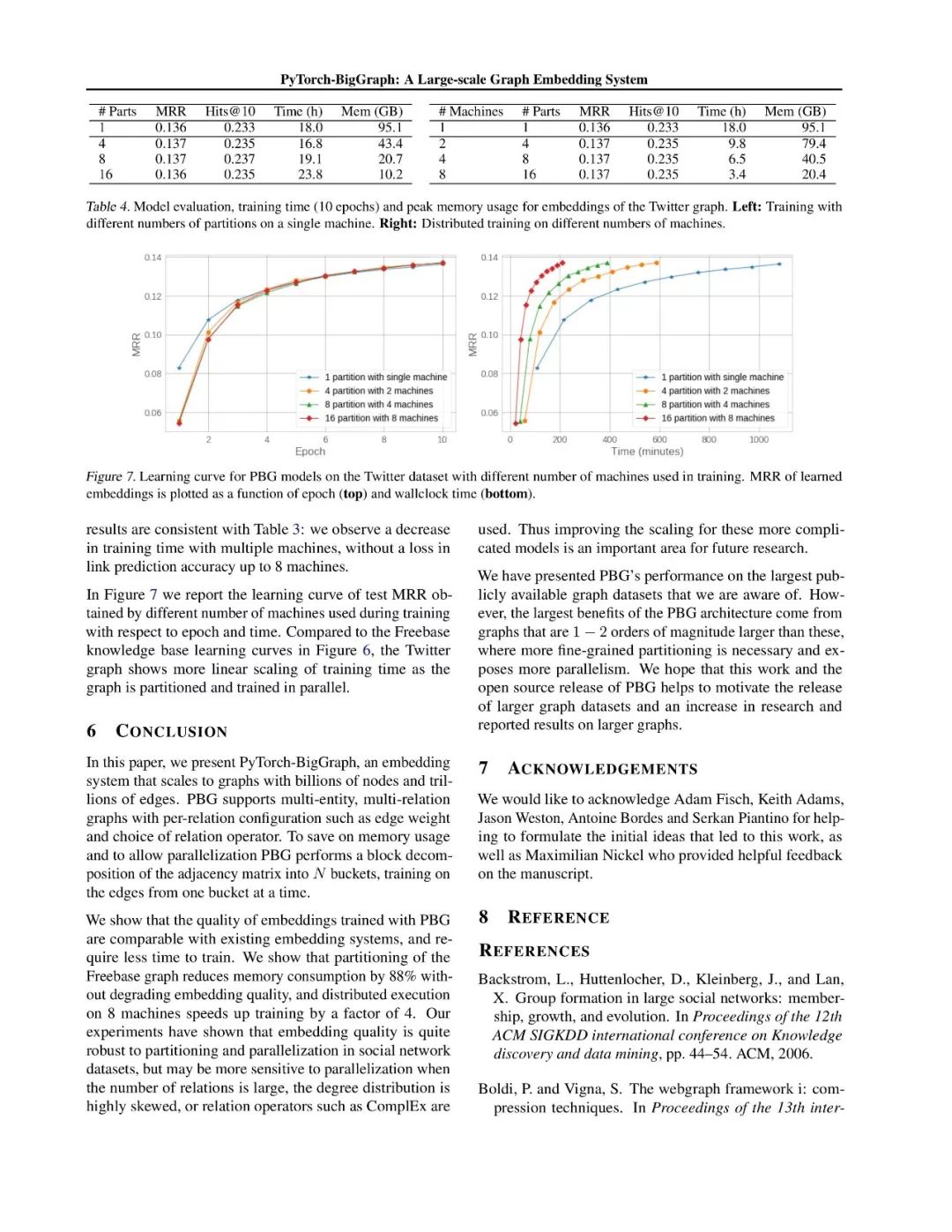 另外,PBG均采用PyTorch实现,研究人员以及工程师可以非常容易的在其基础上实现定制化的损失函数、模型以及其他的组件。
