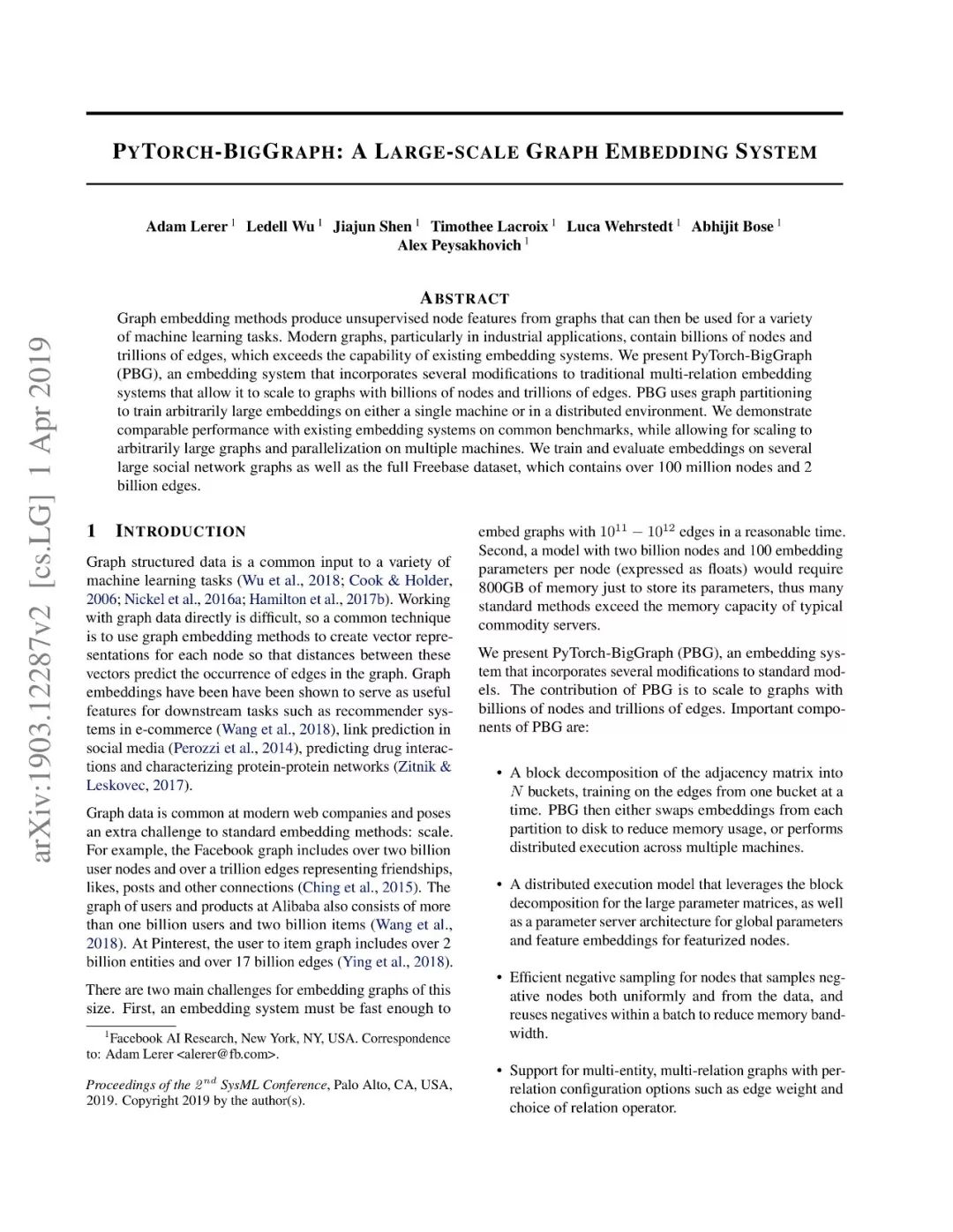 后台回复“PBG” 就可以获取《PYTORCH-BIGGRAPH: A LARGE-SCALE GRAPH EMBEDDING SYSTEM》的下载链接~