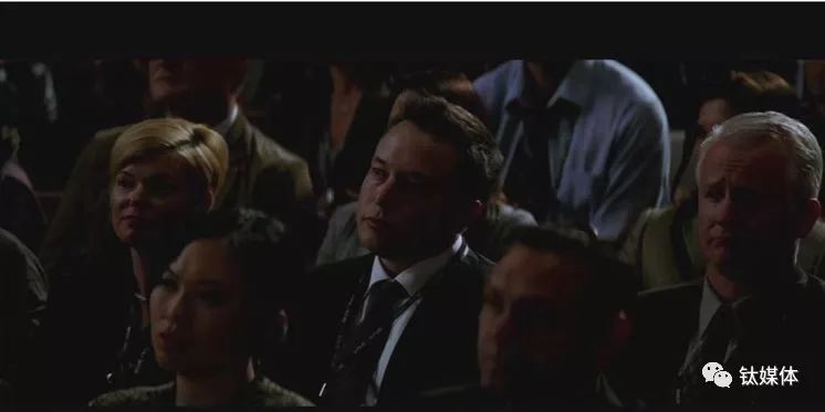 剧中,就是在那次面向学界/科技/商界大佬的基金募集大会上,威尔在台上演讲,当镜头扫过台下的嘉宾,我们发现了马斯克: