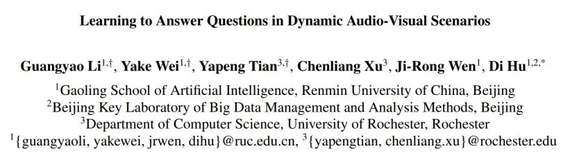 本项研究由中国人民大学高瓴人工智能学院主导,与美国罗彻斯特大学合作完成,通讯作者为 GeWu 实验室胡迪助理教授,主要内容由 GeWu 实验室博士生李光耀负责。