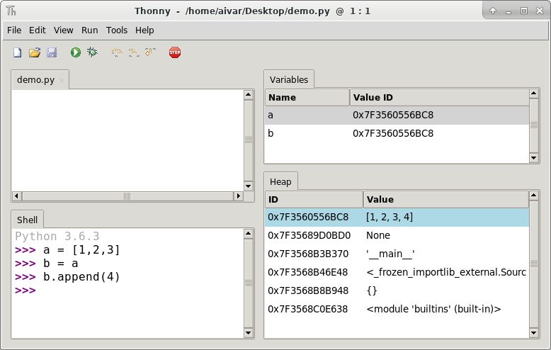 我在这篇文章中提及到的特性是创建 Thonny 的主要原因。很容易对函数调用和引用形成错误的理解,但传统的调试器并不能真正帮助减少混淆。