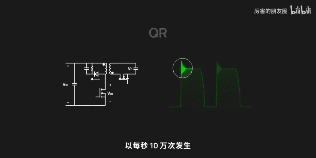 目前 75W 以下的充电器主要用的就是 QR 和 ACF 的电路架构,QR 架构氮化镓每次开关都有一部分的性能损耗,这样的损耗以每秒 10 万次发生带来的热量就非常大了,导致氮化镓开关的频率不能太高,同时也需要更大的面积去做散热,搬运电的速度就上不去,体积就没有办法变小。