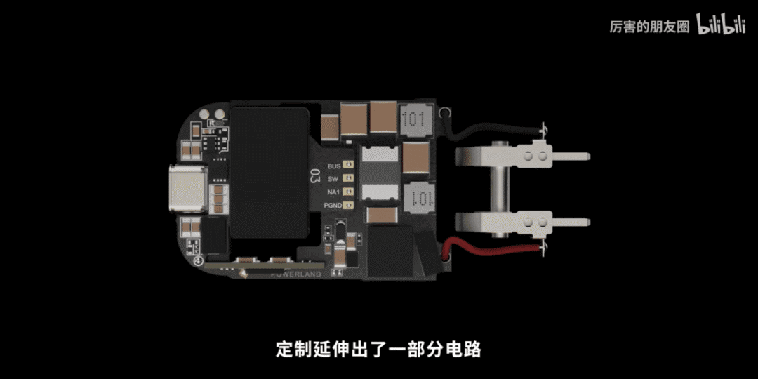 变压器用的是行业内常见的平板变压器,不太常见是定制延伸出了一部分电路,横向的空间也没有浪费,充电器这个领域跟我们大家想的不太一样,一般来说变压器厂商只负责卖变压器,你买来再拿到主板厂商自己去组装,大部分的充电器变压器只是单纯的放在主板上,空间并没有完全被利用上。
