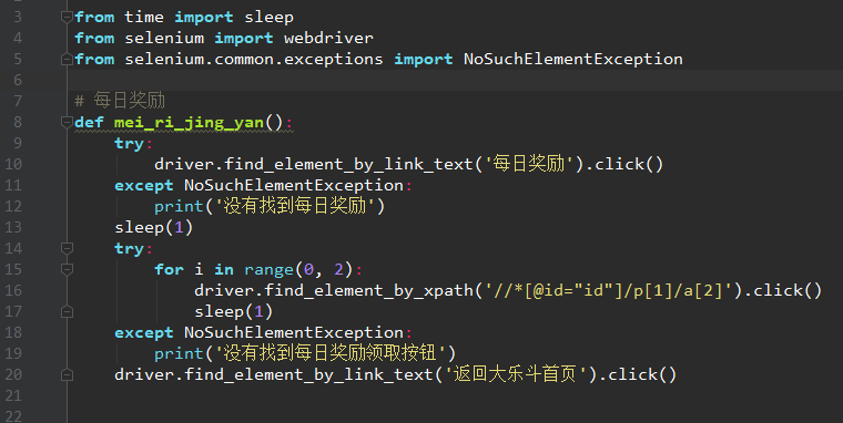 其他的模块我这里就不放代码了,毕竟等级不一样,代码可能没有通用性。而且主要的方法就是定位元素,前篇推文已经详细介绍了,主要是设置等待时长和注意异常情况的判断处理就可以了。