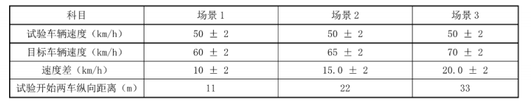 目标车辆应为普通大批量生产的汽车或摩托车。目标车辆为汽车时,轴距应满足 2.0m~2.5m 的范围,作为替代,也可以采用表征参数能够代表车辆且适应系统传感器的柔性目标;目标车辆为摩托车时, 目标车辆的长度应为 2.0DT2.5ID,最宽点(不包括侧视镜)的宽度应为 0.7m~0.9m,高度(不包括挡风玻璃和驾驶员)应为 1.1 m~1.5 m。作为替代,也可以采用表征参数能够代表摩托车且适应系统传感器的柔性目标。