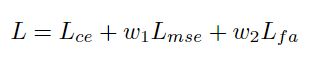 其中SISR(·)和Y代表超分辨率输出及其对应的ground truth,pi和yi代表像素i的分割预测概率和对应类别,N表示像素数。w1和w2设置为0.1和1.0,使这些损失值范围固定可以相互比较。