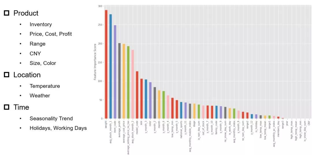根据迪卡侬提供的历史数据,观远数据分析了各因素对销售额的影响,并找出了对销售影响最大的关键因素。 在观远数据的帮助下,迪卡侬比较了几种机器学习算法,如 LightGBM,XGBoost,以便对关键因素进行最佳分析。