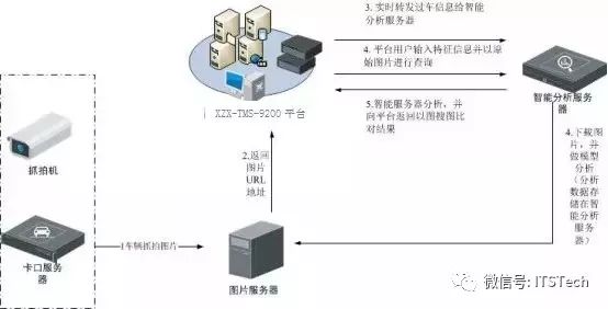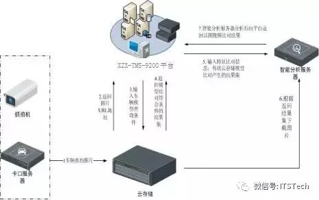 前端新建及已建能够按照标准协议接入的设备通过智能交通综合管控平台交通接入服务器接入转发至云分析平台进行车辆建模和二次识别。已经部署云存储模块的系统,云分析也能够直接从云存储中读取图片信息进行车辆建模和二次识别。
