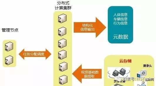 视频云分析平台则是通过整合用户现有的数据中心分析设备,对过车视频、过车图片等数据进行进一步分析,其中中心分析设备采用分布式计算节点集群的方式,能够提供基于任务自动负载均衡的数据处理方式,解决从海里视频图像数据中解析出来的视频结构化数据的需求。