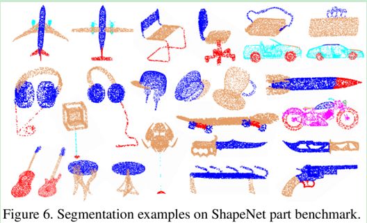 ShapeNet part 上的分割效果如图 6 所示。尽管点云所形成的形状多种多样,并且很容易产生混淆,RS-CNN 依然可以准确地将部件分割出来。