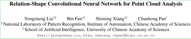 论文:Relation-Shape Convolutional Neural Network for Point Cloud Analysis