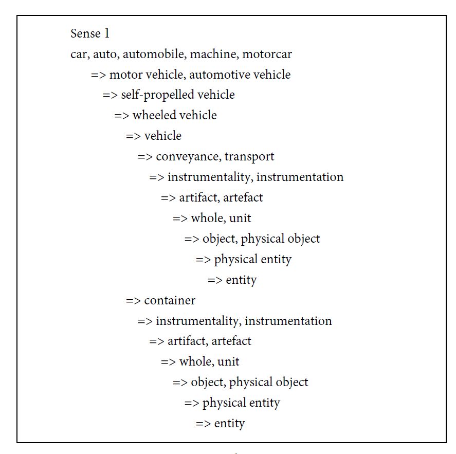 知识表示的另一个来源是心理学和语言学,例如概念的上下位继承关系最方便的表示方式是树而不是一阶逻辑。心理学实验表明人在回答“金丝雀会飞吗?”要比回答“鸟会飞吗?”花的时间长,要回答第一个问题,人要再做一次“金丝雀是鸟”的推理。因为人在存储知识时只存储抽象的,这是空间经济的考虑。心理学家米勒和乔姆斯基等一起开拓了认知科学,他最出名的论文大概就是那篇“魔力数字七”(The Magic Number Seven)。他除了理论的贡献,晚年带领普林斯顿大学的认知科学实验室同仁做了“词网”(WordNet)。WordNet 不单是一个同义词辞典,还定义了词的上下位关系,例如,car 的一种上位是 motor,可以再上位到 wheeled vehicle,直到 entity。WordNet 成为自然语言处理的基本工具。