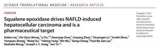 Dabin Liu, Chi Chun Wong, Li Fu, Huarong Chen, Liuyang Zhao.Squalene epoxidase drives NAFLD-inducedhepatocellular carcinoma and is apharmaceutical target