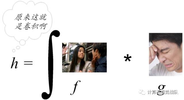 这时你要想明白啊,你的女友可没有那么便宜,你洗一双袜子就把人家搞定了?想得美!实际上,正解应该是,你一直对女友的各种好(函数f)和你女友的心理期许(函数g),一直在时间维度上进行不断地叠加耦合(积分求和),最终超出了女友的阈值,然后她输出了你想要的结果“Yes, I Do”。那么,这个函数f和函数g一起“卷积”出来的,到底是个什么样的函数呢,我劝你也别猜,“猜来猜去也猜不明白”,反正它很复杂就是了,而你要做的,就是持续不断地对她就对了。