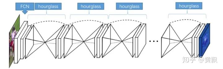我们知道原始的anchor-free框架的大多数backbone都是采用了骨骼关键点中的hourglass结构: