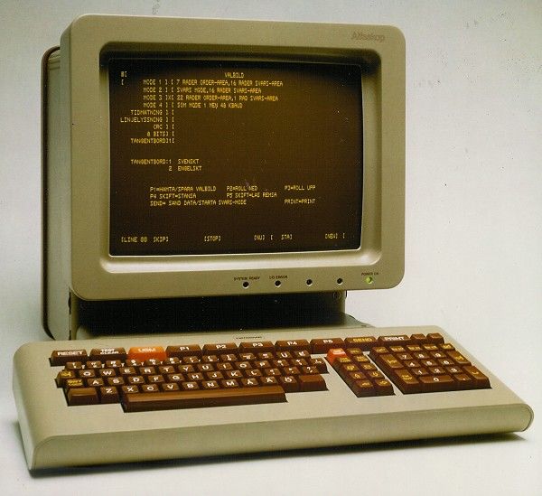 70 年代末,我们有了终端机。我们从来没有自己的终端机,而是共用一个终端机房。当我们想要修改一个程序时,我们极力争取才能获得使用终端机的时间。程序会在屏幕上闪现,我们可以修改它。我们有黄色和棕色的 Alfaskop 终端机。在 1979 年离开 SJ 之前,我从未拥有过自己的终端机。