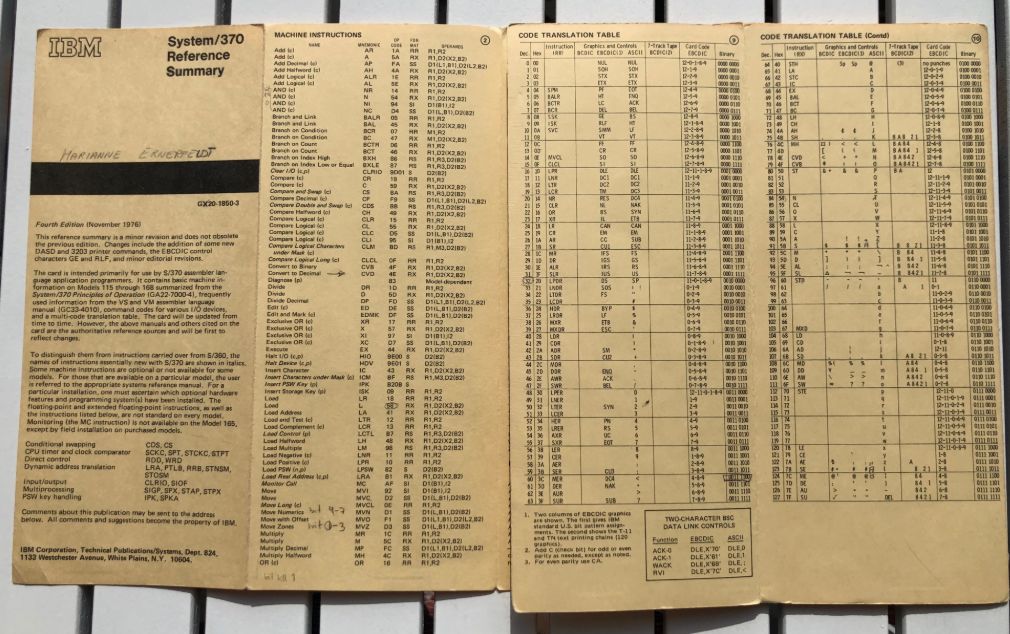 1976 年的 IBM System/370 参考资料。我在右边写了ÅÄÖ(5B、7B 和 7C),因为瑞典字母不包含在 EBCDIC 中。那时的培训怎么样?