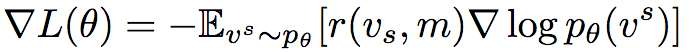在强化学习的语境下,Polygon-RNN++的RNN解码器可以视作序列决策智能体。CNN和RNN架构的参数θ定义了选择下一个顶点vt的策略pθ。在序列结束后,我们得到奖励r = IoU(mask(vs, m))。因此,最大化奖励的损失函数为: