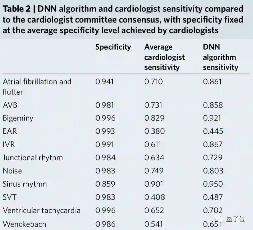 并且,针对每一种心率,AI的敏感性都要比人类医生高,也就是说,诊断结果更为准确。