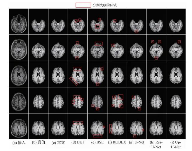 图 不同方法的脑部磁共振图像颅骨去除效果对比