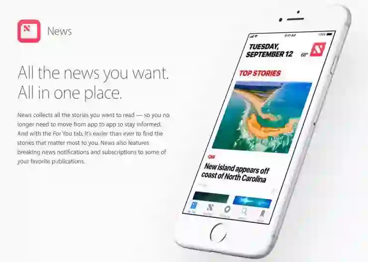 2015 年 9 月 16 日,伴随着 iOS 9 正式版的发布,Apple News 作为一款 iOS 应用在 iPhone、iPad 和 iPod Touch 中正式上线,初期仅限美国市场,后来又覆盖到英国和澳大利亚市场。随后在 WWDC 2016 上,Apple News 随 iOS 10 进行了更新。