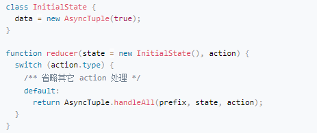 使用 AsyncTuple.handleAll 处理 LOADING/SUCCESS/ERROR 这 3 种 action,handleAll 的代码很简单,使用 if 判断 action.type 的后缀即可,源码【2】。