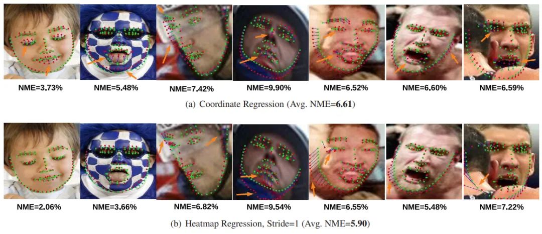 那么从预测的关键点形状的稳定性来看,Heatmap和Regression方法各自表现如何呢?本文从这里入手进行了实验对比: