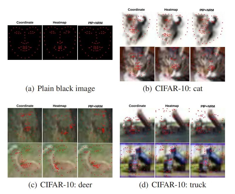 但在非人脸图像上,Heatmap方法预测的关键点形状明显崩坏了不少,这与我们关于“特征匹配的特性会破坏形状的连续”的推测相吻合。