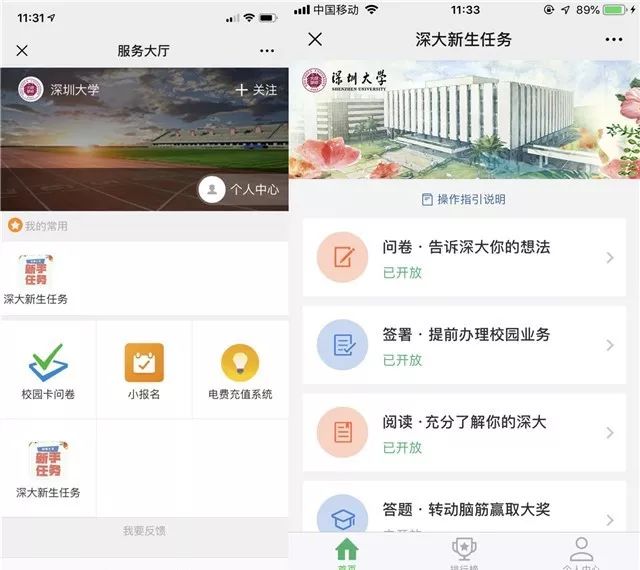 这是深圳大学的“新手村”,通过腾讯微校新生们可以在这里完成新生任务。