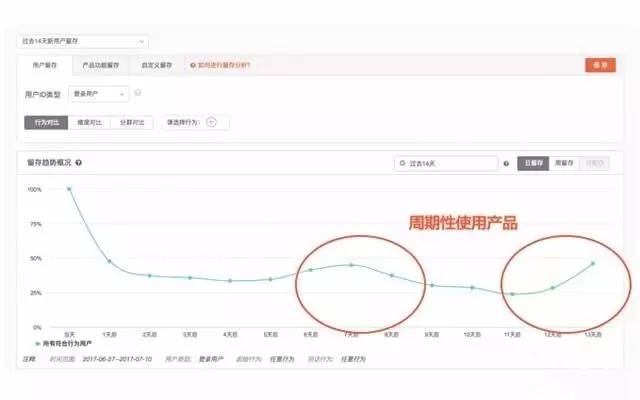 理解你产品的使用周期,比如社交软件的使用频率较高,就以日来算,而有些产品是以周来算,有些产品则是以月来算。