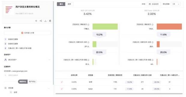 拆解出提升总体注册用户数的各个指标后,就可以对这些指标进行数据采集。比如我们可以用 GrowingIO 的圈选功能,几分钟即可完成数据采集,然后做进一步的分析。