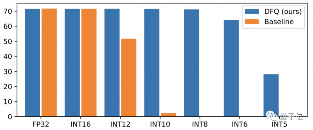 其中,DFQ是一种无数据量化技术,可以减少训练AI任务的时间,提高量化精度性能,在手机上最常见的视觉AI模型MobileNet上,DFQ达到了超越其他所有方法的最佳性能: