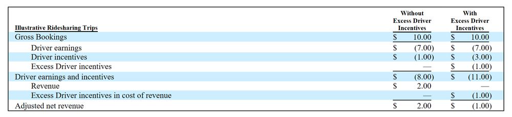 根据优步给出的模型,没有“额外激励”时变现率约为20%,即10美元总订单金额优步拿2美元。“额外激励”后,变现率为负10%。也就是说,优步为获得10美元总订单金额要倒贴1美元!用户出行次数越多、订单金额越高,优步倒贴的钱就越多。