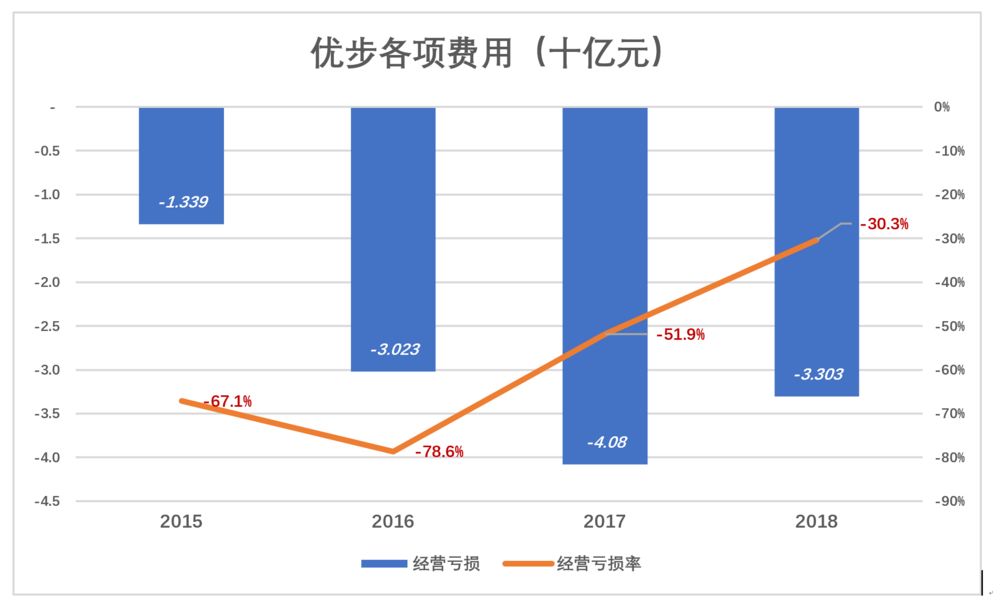2018年,优步经营亏损33亿美元,较2017年减少19%,亏损率从2017年的51.9%降到30.3%。
