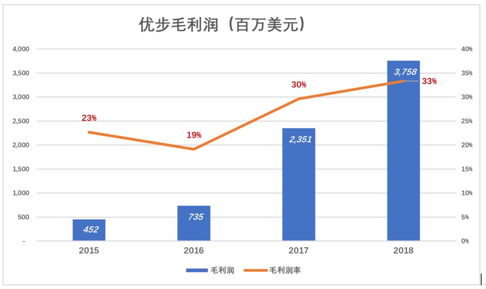 扣除营收成本后,尚有可观的毛利润。2018年为37.6亿,毛利润率33%。