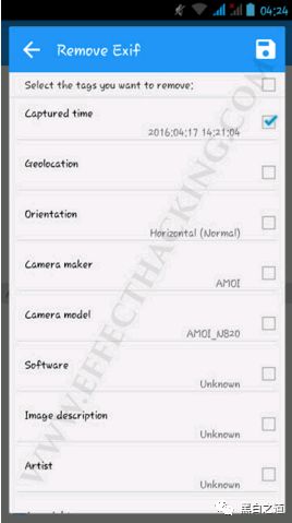 但是如果你想从图像中删除任何exif标签,只需点击“ Exif ”,然后选择你想要删除的标签,然后保存设置(见下图)。