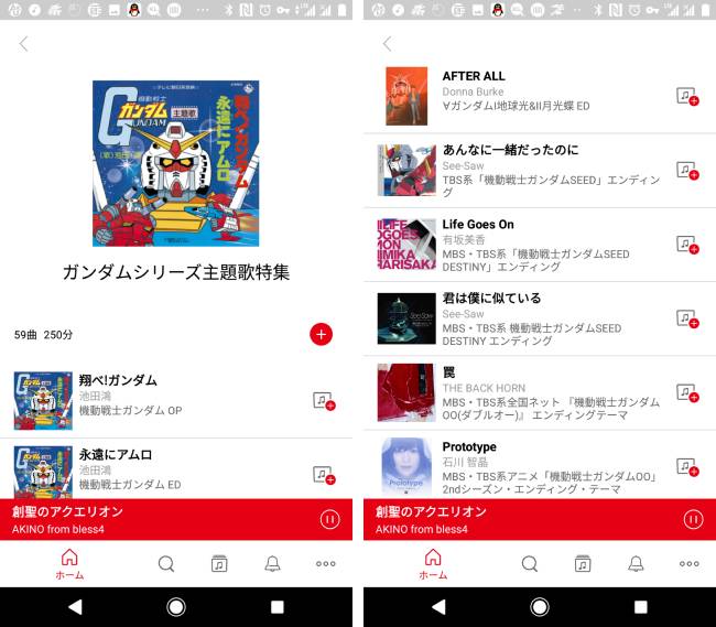 然而即使是垄断巨头加盟,一样改变不了万恶的版权问题,甚至可以说你能更明显体会到这个尴尬。ANiUTa 会针对不同的主题提供相关的特集,比方说日升制作的高达系列动画主题曲,能看到 2000 年前的作品基本收录完毕,但是在千禧年后的作品例如种和蛋蛋,由于部分主题曲的演唱者教主、UVERworld 都是隶属于索尼音乐的,所以并没有收录。