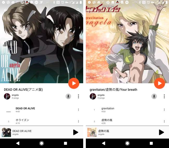 那就是曲库,在 Play Music(日区)上我居然找到了 King Records 所属的 11 区凤凰传奇——angela 的曲目,特别是 Fafner 的一二季、剧场版的主题曲,简直让我感动到哭了。不仅如此,即使是同一个艺人,例如 Gackt,在专辑数量上差距也是很大的,对于我个人来说是个巨大的优势。加上 Play Music 的 Material Design,在 Android 上使用体验是很好的,除了播放界面的歌曲封面实在是。。。毕竟我是一个封面党,当初选择 Spotify 也有这个原因,可考虑到曲库问题,封面就不管了。