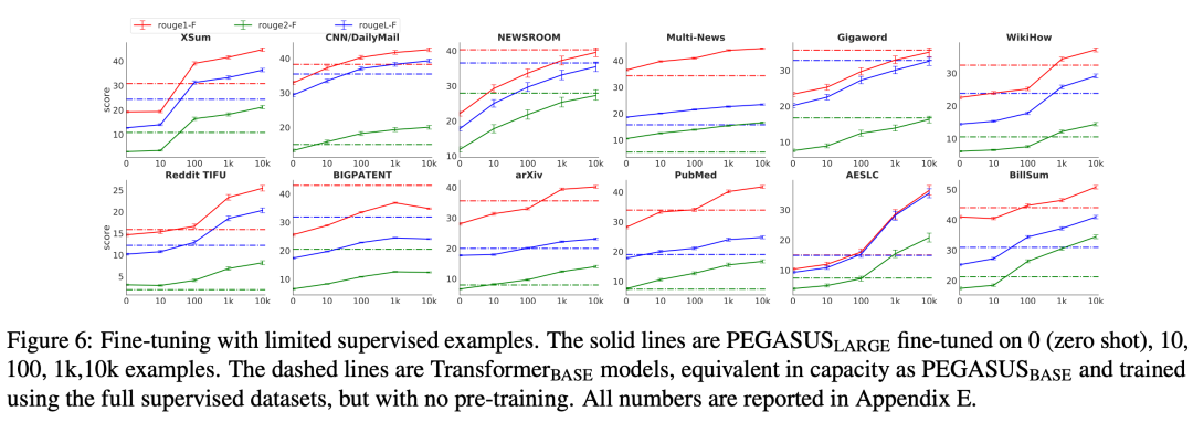 文章提出了一种专门针对文本摘要生成的预训练方法,并提出了一种 GSG (Gap Sentence Generation) 的生成方法,该方法在模型的 fine-tune 阶段只需要 1000 个 example 就能达到 12 个数据集的 SOTA,这个结果还是很抢眼的,值得仔细读一读。