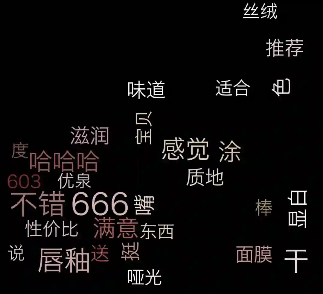 去除“口红”“不错”“喜欢”等关键词之后,你敢相信出现频率最高的词是“666”嘛??