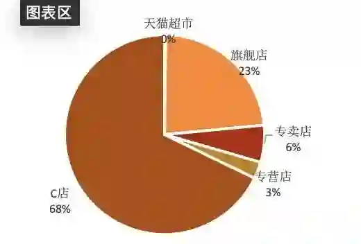 从口红分布的店铺来看,68%的产品是在C店,其次是旗舰店,占比23%。但是,不要急!看看销售额分布: