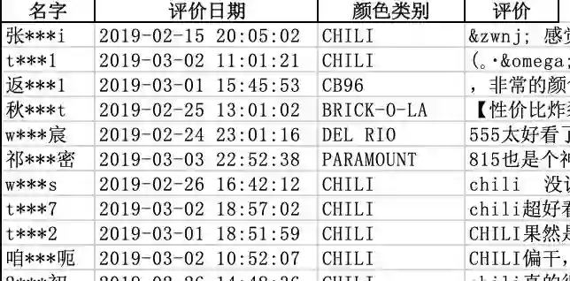 除此之外,我还爬取了销售TOP3产品的100页评论,主要是想借由评论者的的产品属性来看看大家都喜欢什么色号,这个会在后续分析。