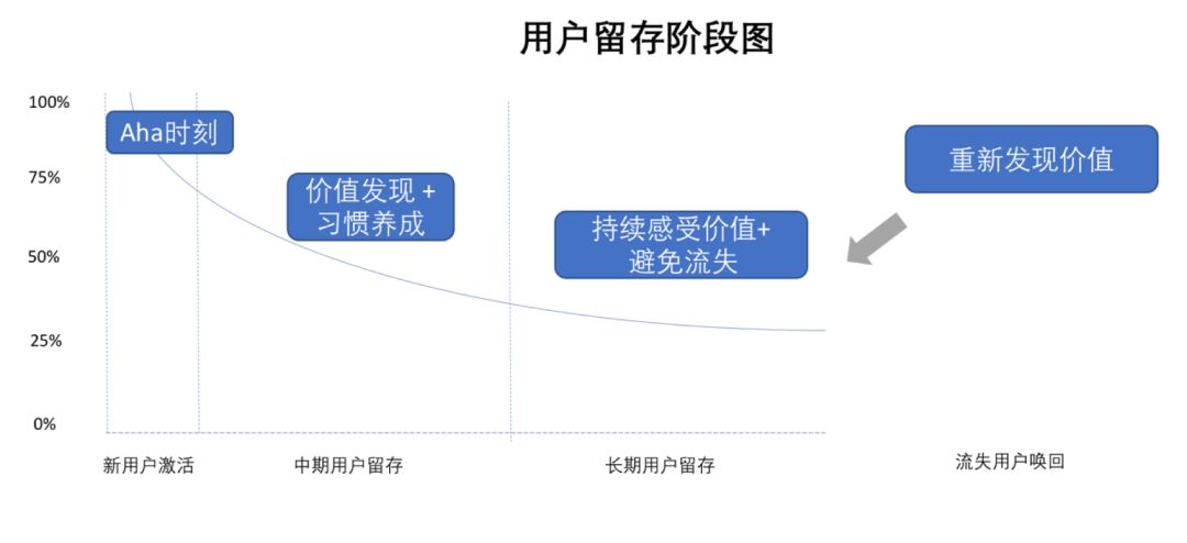 留存有不同的阶段,AHA时刻、新用户的激活是留存的第一步。
