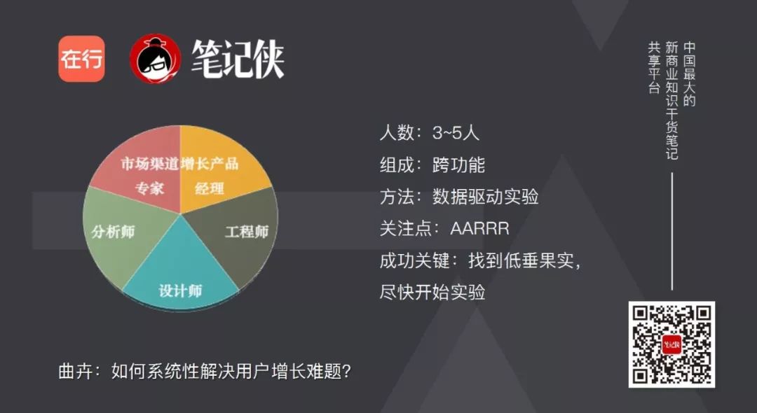 因此在公司增长黑客是由一个跨功能的团队形式组成的,这里面有增长产品经理、工程师、设计师、分析师,还可能有市场渠道的专家,用这样一种模式去推动。