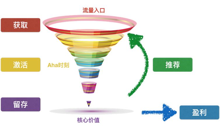 这是增长黑客的思维,和传统营销最大的不同点,它关注的是整个生命周期:从获取,到激活,到留存,到推荐,再到变现。