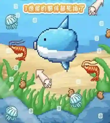 游戏的开头就写了“3亿条的伙伴都死掉了”,所以,要把翻车鱼养肥了、养大了其实很不容易。不过,游戏可不止养鱼这么简单,它的最终目的其实是——把翻车鱼养到猝死,然后,收集死法。